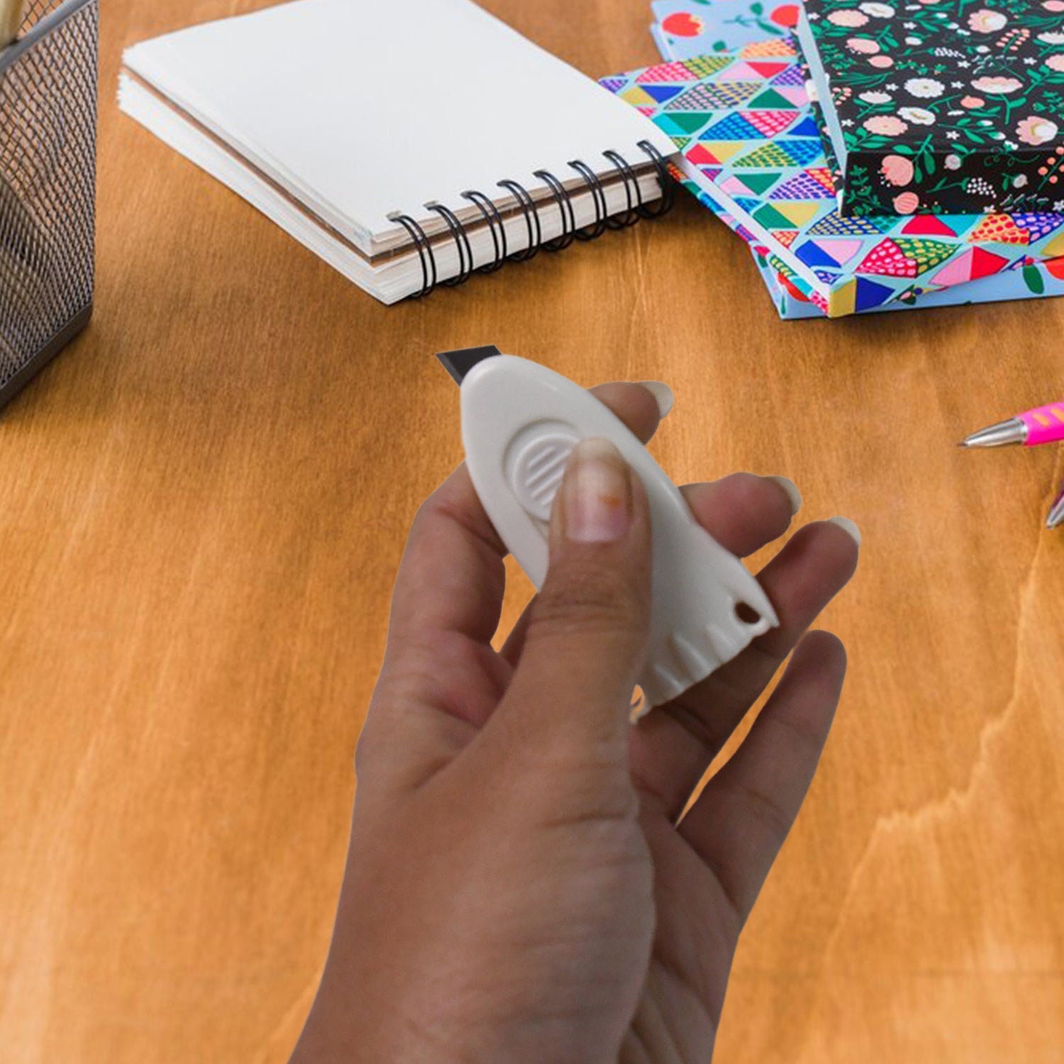 - Retractable & Safe Cutter: This pocket knife has a automatic retractable blade, this design can avoid most of the injuries by mistake. The blade made of stainless steel, which is extremely sharp and can slice through most of the objects.