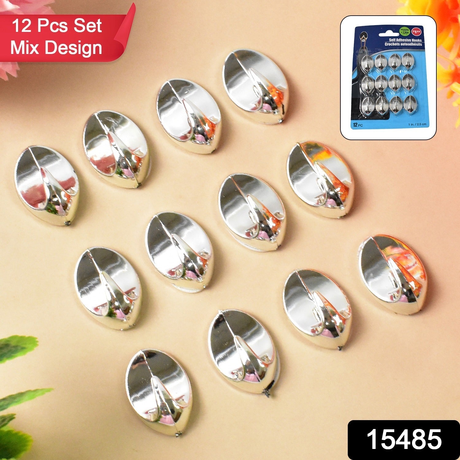 Plastic Multipurpose Wall hanging hook, Self Adhesive Wall Hanging Hooks Sticker Hook, Suitable For: Wall Paper, Calender, Bathroom Tiles, Kitchen, Key Hange and etc Hook (12 Pcs Set / Mix Design)